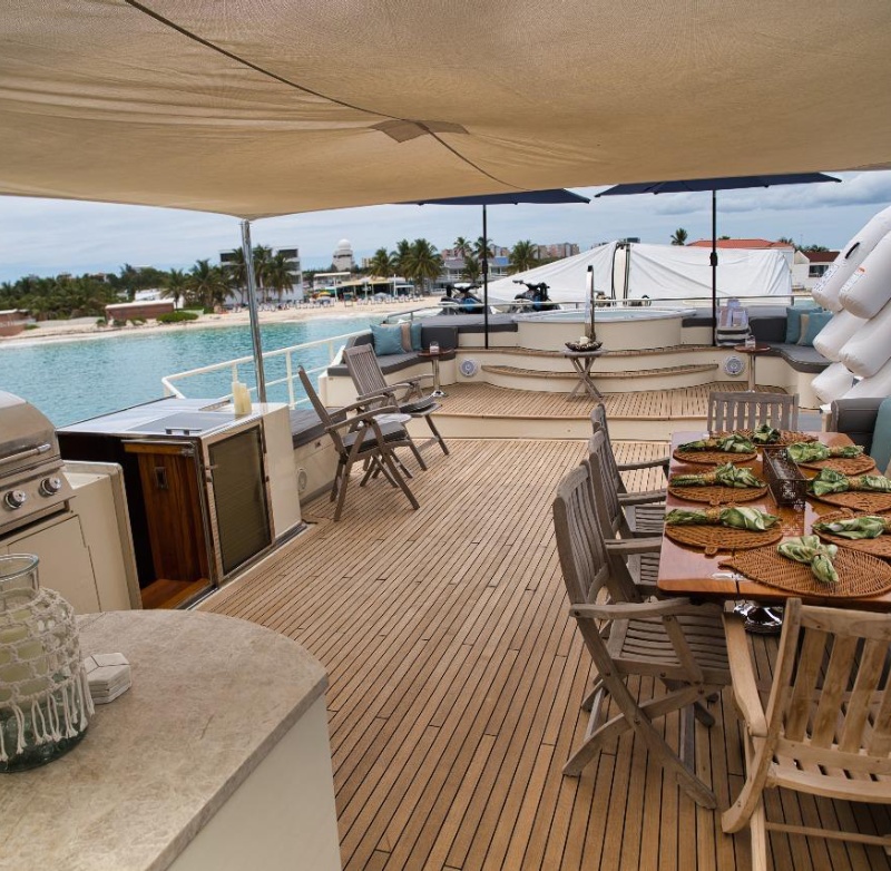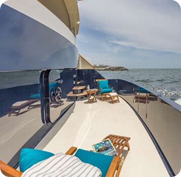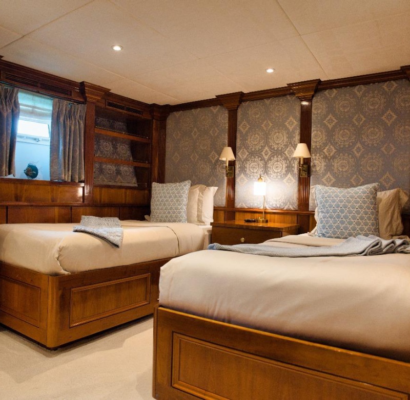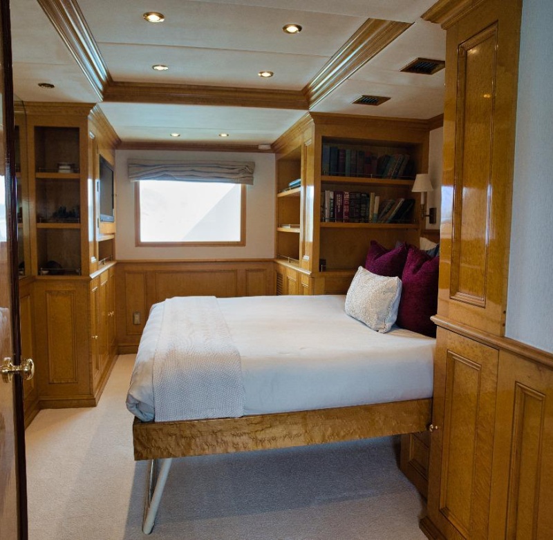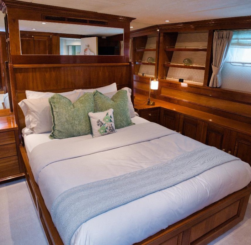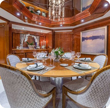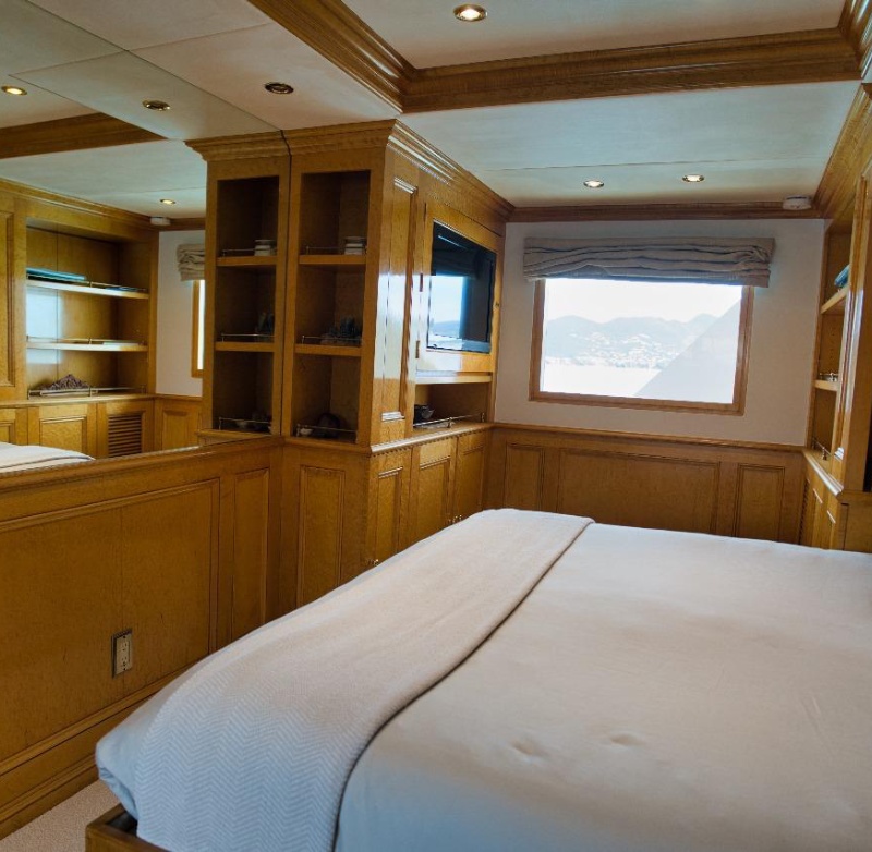 Yacht BLUE is a distinctly sophisticated superyacht promising unforgettable luxury yacht charters, offers guest accommodation for up to 8 guests in 4 suites comprising a master suite, one VIP cabin, one double cabin and one twin cabin. There are 5 beds in total, including 1 king, 2 queen and 2 singles. She is also capable of carrying up to 6 crew onboard to ensure a relaxed luxury yacht charter experience. Whatever your activities on your charter, you’ll find some impressive features are seamlessly integrated to help you including air conditioning to keep your comfortable throughout your charter.